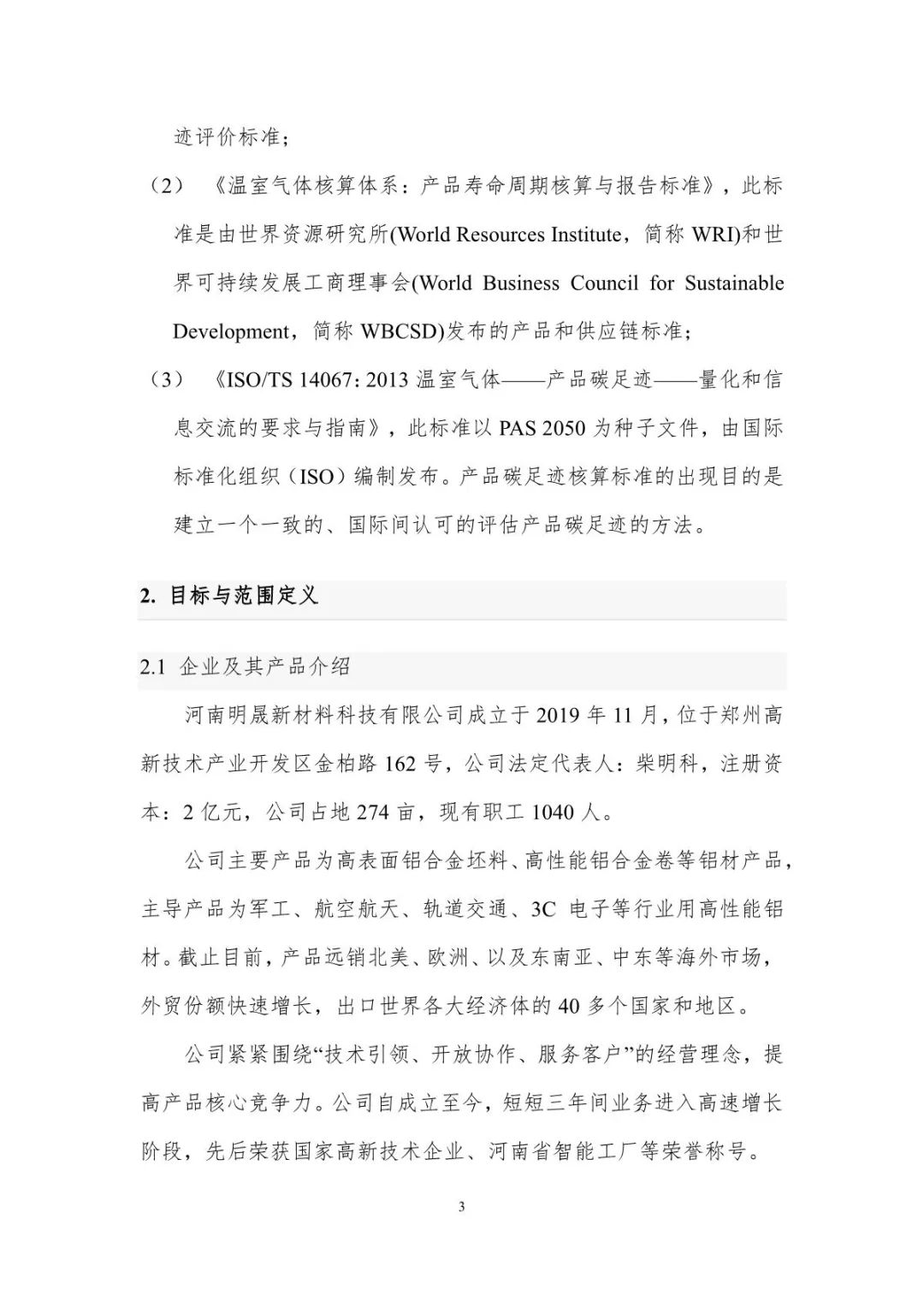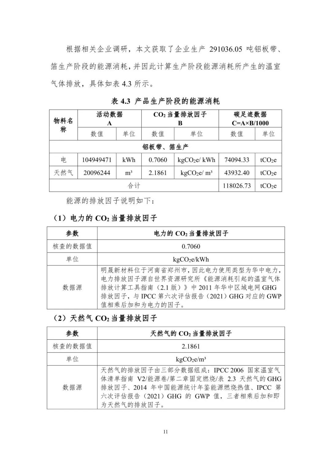 明泰鋁業(yè)子公司明晟新材料-產(chǎn)品碳足跡報(bào)告