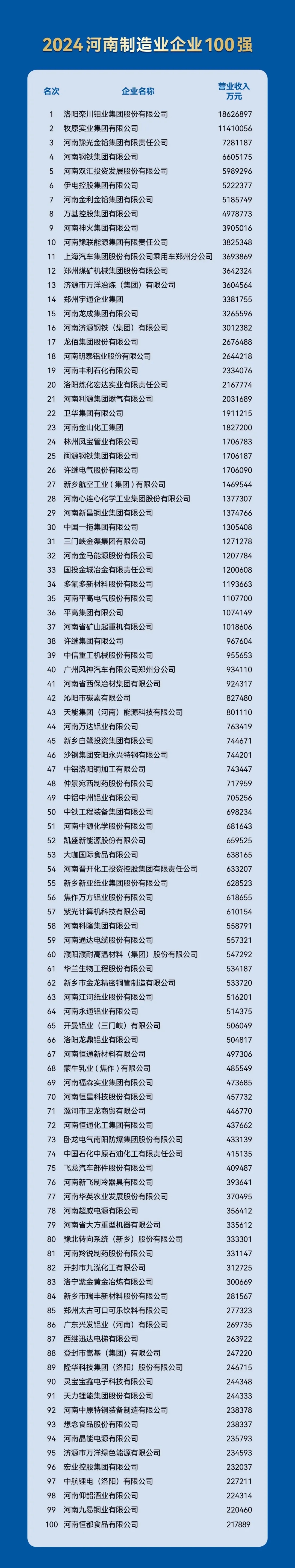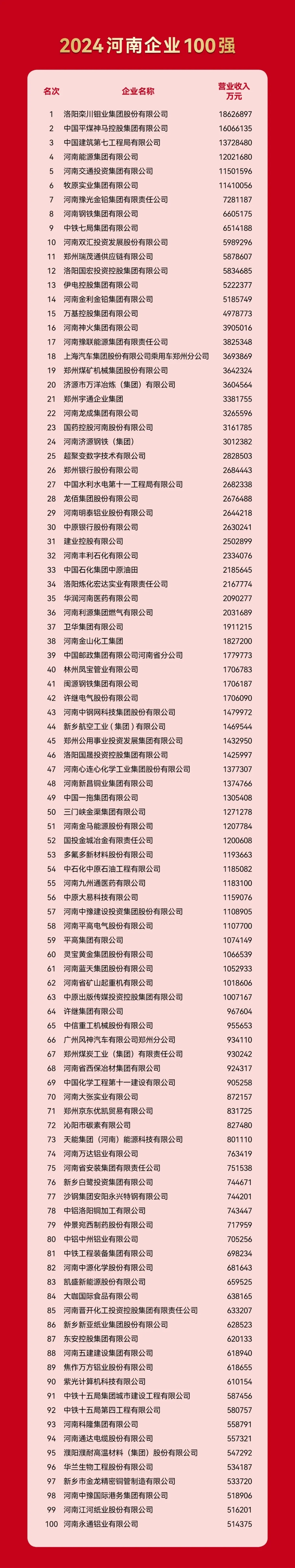 2024河南企業(yè)百強揭曉,明泰鋁業(yè)及2家子公司上榜!