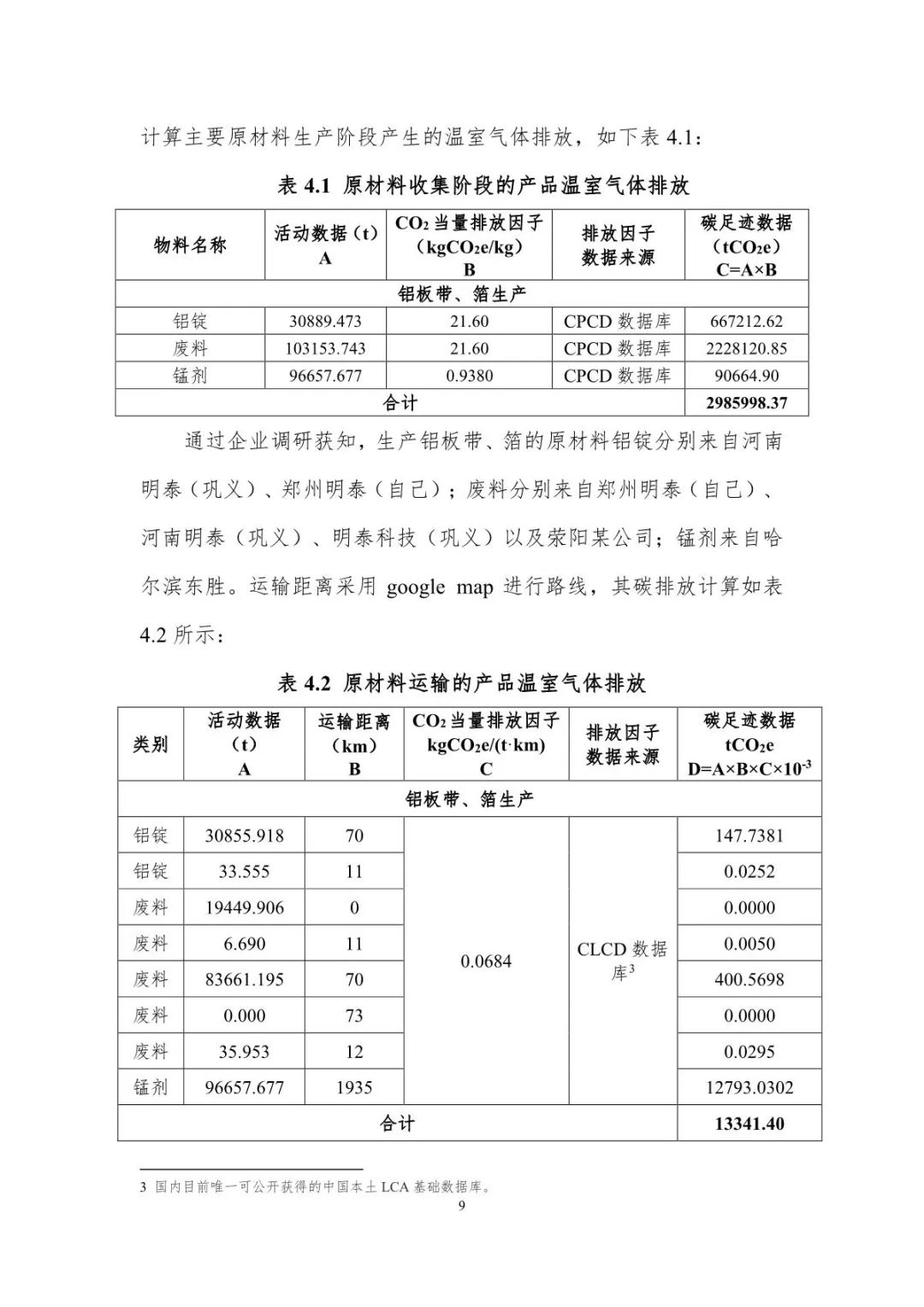 明泰鋁業(yè)子公司明晟新材料-產(chǎn)品碳足跡報(bào)告